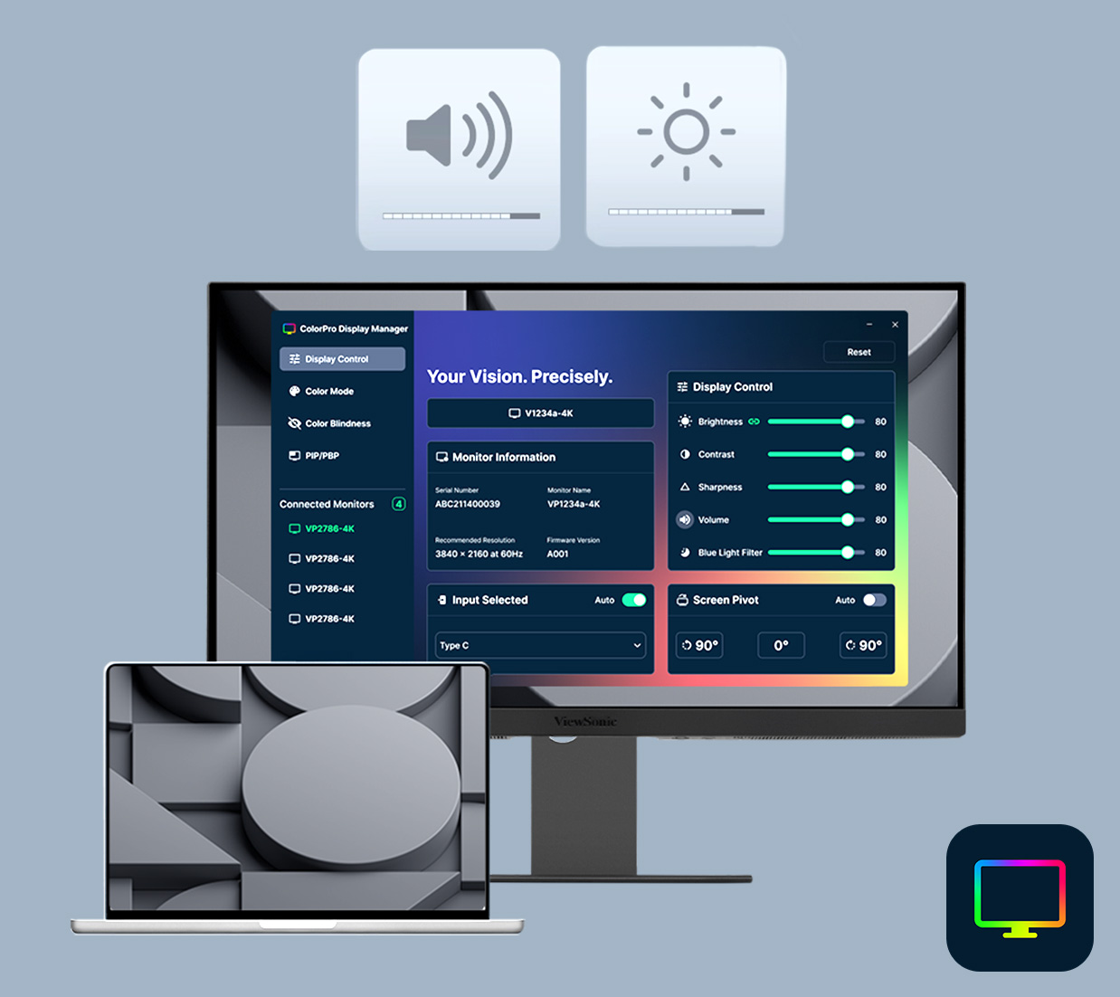 Using a Mac with a ViewSonic® monitor is simple. With ColorPro® Display Manager you can adjust brightness and volume using your Mac function keys.