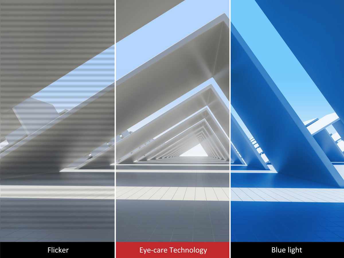 Flicker-Free technology and a Blue Light Filter help to eliminate eyestrain from extended viewing periods.Flicker-Free & Blue Light Filter