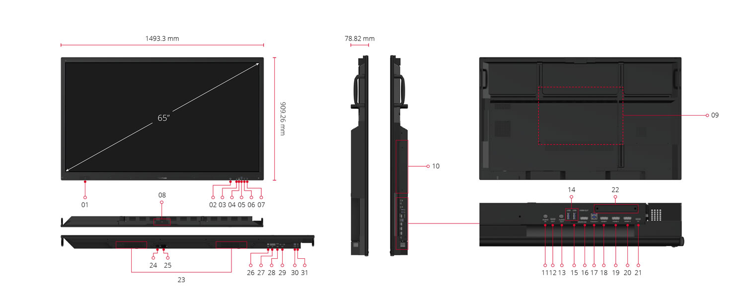 - Hiển thịKích thước bảng điều khiển: 65"