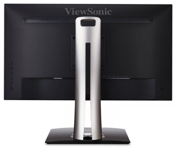 The back of the screen is enclosed in a matte black plastic with a large ViewSonic logo at the top. The stand attaches in the centre and can be removed for VESA 100 compliant mounting options if you wish. You have to screw this on when you first set up the screen as it is not a quick release stand bracket. You can see the OSD control and power buttons on the left hand side of the image (when viewed from behind).