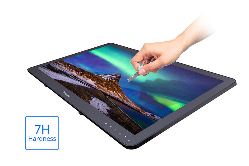 Màn hình cảm ứng TD2430 được trang bị lớp kính bảo vệ có độ cứng 7H với khả năng chống trầy nhằm mang lại trải nghiệm cảm ứng an toàn và bền bỉ nhất. Lớp kính này ngăn chặn mọi trường hợp hư hại nặng nề do ngón tay, móng tay hoặc bút cảm ứng stylus gây ra trong khi thực hiện các thao tác chạm, nhờ đó giúp màn hình trở thành sự lựa chọn lý tưởng để sử dụng trong các quầy thông tin, cơ sở giáo dục hoặc các môi trường công cộng khác.