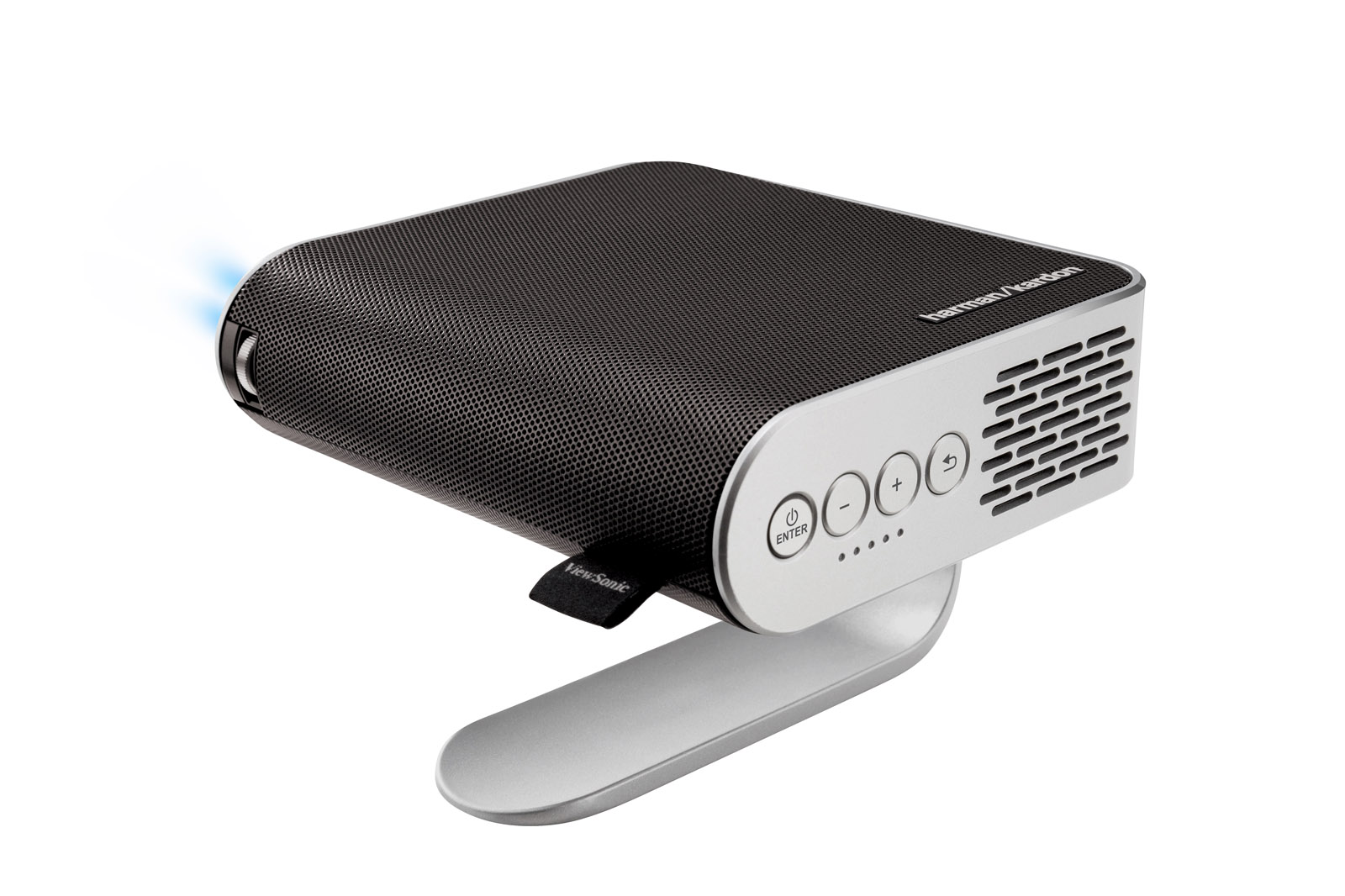 “The ultra portable ViewSonic M1 ($299) weighs all of 1.7 pounds complete with its battery and an innovative built-in stand that makes it easy to set up and aim at a screen--or any handy wall or ceiling--over nearly 360 degrees of pitch.”