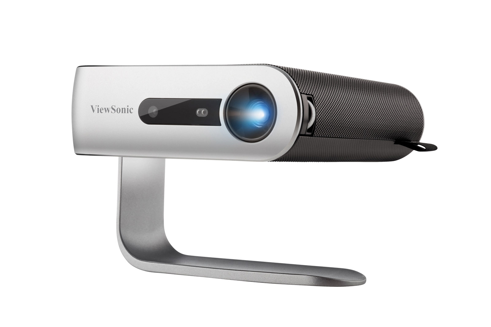 “From the time we first unboxed the ViewSonic M1, we were impressed with how this device looks and feels. The projector is compact and fits easily in one hand, so it's small and light enough to carry around in a backpack. Perhaps the most interesting design aspect here is the swivel stand, which serves as a lens cap when the projector isn't in use. The stand swivels 360 degrees, and can be used to conveniently set the angle of the projection as well.”