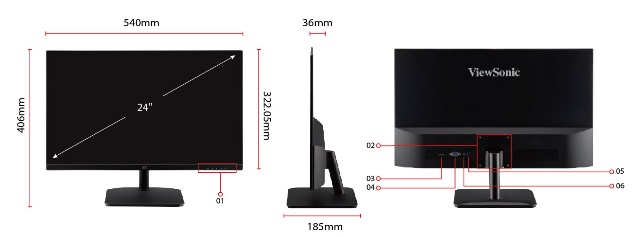 | NỘI DUNG GÓI: | VA2432-MH x1, HDMI Cable (v1.4; Male-Male) x1, AC/DC Adapter x1, Quick Start Guide x1, Power plug x1 or 2 (by country) |