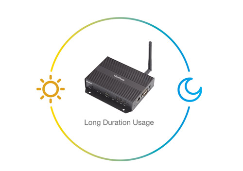 The media player is designed for long duration usage with self-recovery functionality. It ensures the HTML5 contents can continuously playback even when the network is down. In addition, with built-in watch-dog timer functionality, it will automatically recover player data, for minimal maintenance when “no signal” circumstances occur.