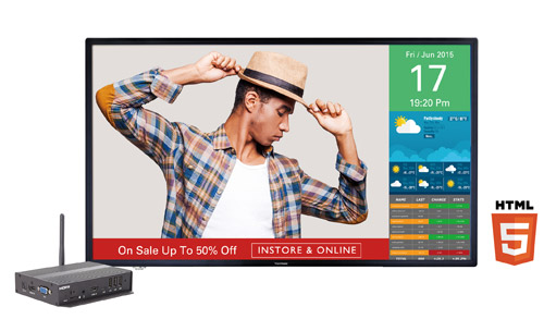 This media player supports HTML5, W3C, and SMIL content retrieved from the Internet. This gives users the opportunity to display fresh and interesting content such as news, weather information, stock market trends, sports scores, social networking, or RSS feeds on multiple screens.