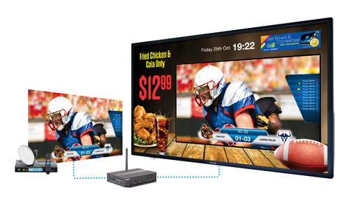 Integrated with HDMI input, the media player is able to receive Full HD video content, like set-top boxes and DVD players. TV programs or movies can be spliced in with store promotional content, creating dynamic advertisements and giving users the ability to personalize and customize their message to the consumer.