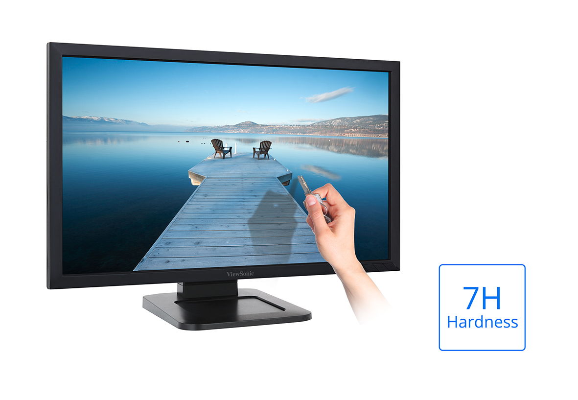This touch display is designed with a durable, protective glass faceplate. This provides increased scratch protection to ensure durability, as well as a consistent, high-quality touch experience in high-traffic areas such as commercial setting, or other public environments where the touch display can be used as a kiosk.