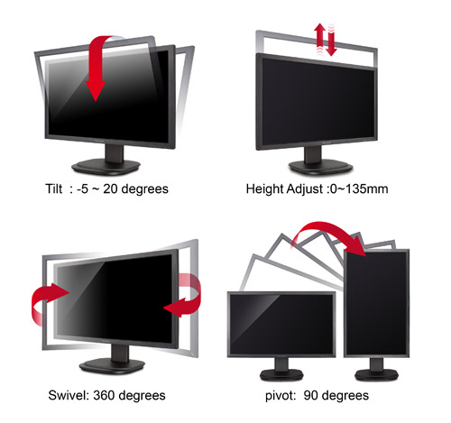 With advanced ergonomic features, ViewSonic displays provide a greater range of adjustments including swivel, pivot, tilt, and height-adjust options.