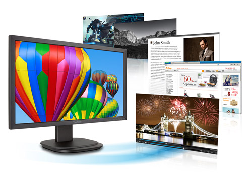SuperClear® MVA Technology delivers exceptional color performance and extends display viewing angles to 178 degrees both horizontally and vertically. Experience accurate and vivid colors with consistent levels of brightness whether looking at the screen from above, below, the front, or the side—with no color distortion or decay.