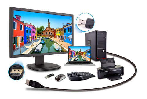 The latest standard for rapid transmission of data, DisplayPort future-proofs this monitor and delivers the best refresh rate, highest resolution, and incredibly rich colors. This monitor also offers VGA connections, as well as an integrated 2-port USB hub, to support flexibility for both digital and analog media sources, as well as easy connectivity to peripherals and accessories.