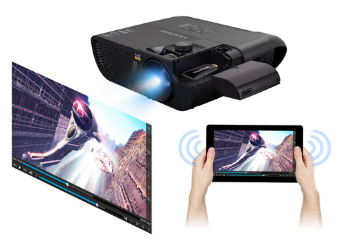 ViewSonic’s exclusive PortAll™ feature—a hidden compartment with an integrated and secure MHL/HDMI port that lets you discretely stream multimedia content from a wireless dongle, or lets you connect to other devices via an HDMI cable. * Wireless dongle is optional