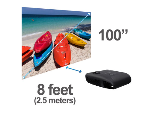 The short throw lens enables large images to be projected from short distances in small rooms. This means there are no distracting shadows on the projected image, and no blinding lights in the eyes of presenters.