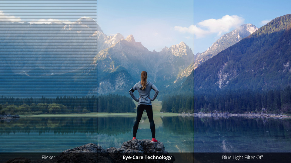 Flicker-Free technology and a Blue Light Filter help to eliminate eyestrain from extended viewing periods.