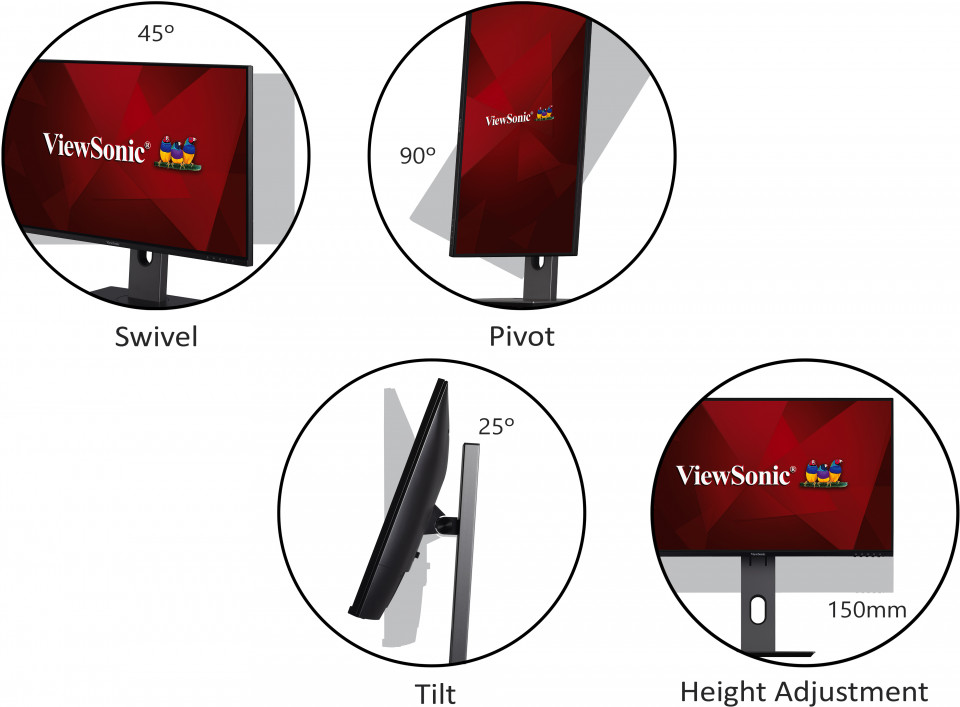 Enjoy a more comfortable and flexible set-up with an ergonomic stand. With swivel, tilt, pivot and height adjustment, the VX2480-SHDJ can be positioned where you need it to be, no matter your desk layout.