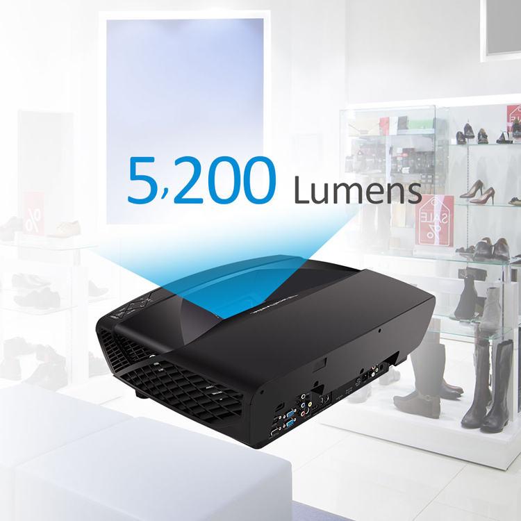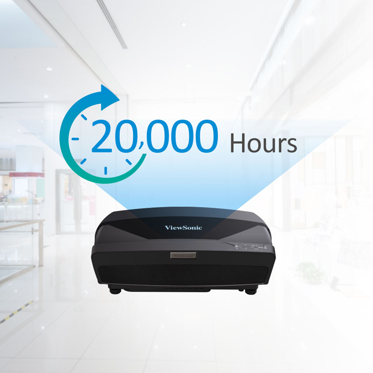 Powered by a Laser Phosphor light source system, the ViewSonic LS810 laser projector provides resource efficient solution when compared to traditional lamp-based projectors. Pure laser lasting up to 20,000 hours which delivers long-term, virtually maintenance-free usage. Featuring 1280x800 WXGA resolution and 5,200 ANSI Lumens of brightness, the ViewSonic LS810 Laser Projector is the ideal solution for high-end retail and luxury commercial use. With a 0.24 ultra-short throw ratio, the LS810 can be placed just inches away from a wall or screen to project a huge image. High contrast ratio and pure laser light source displays superior image quality than other DLP projectors.Laser Phosphor.20,000 hours lifespan.0.24 ultra short throw