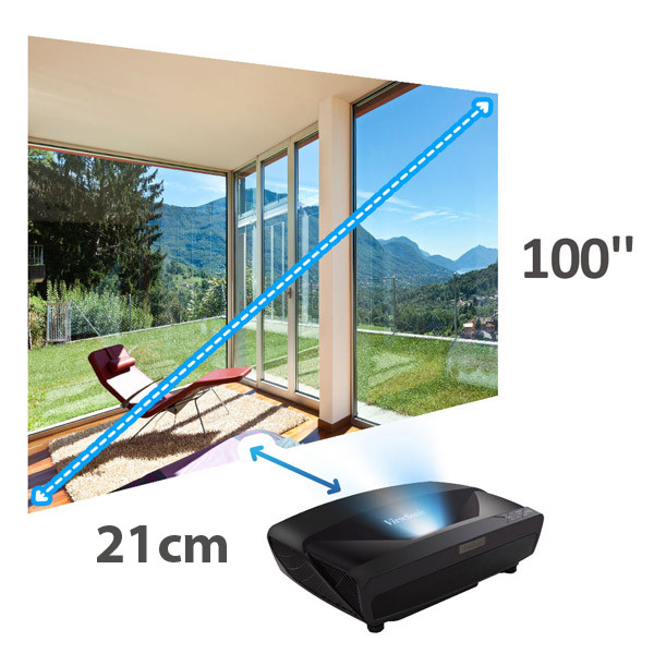 ““The ViewSonic LS820 is a full HD (1920x1080) 3D home theater projector with two killer features that fully justify its $2999 MAP price. The first is its ultra-short throw, which lets you place it on a table within inches of a wall-mounted screen, run data and power cables to it with no more effort than connecting an HDTV, and have a far bigger image than you can get with any comparably priced TV--even if you include the price of a screen. The second is a laser-and-phosphor-wheel light source with a 20,000-hour life in Eco mode and a three-year warranty.””