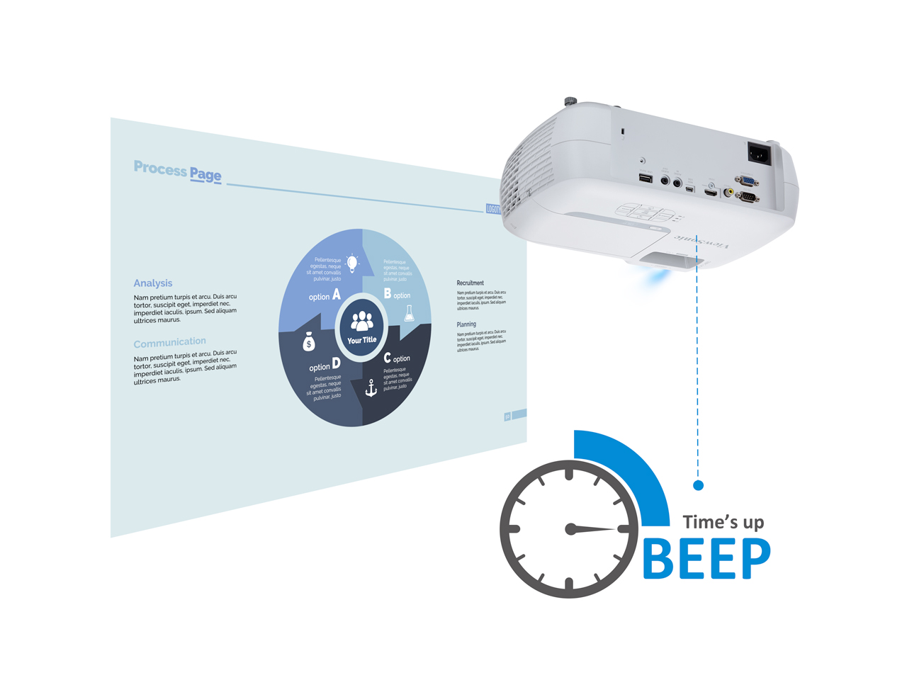 Presenter Timer is an embedded on-screen timer that helps users with time management during presentations. Once a specified time limit has been reached, the projector will signal this with a beep, keeping presentations running on time.